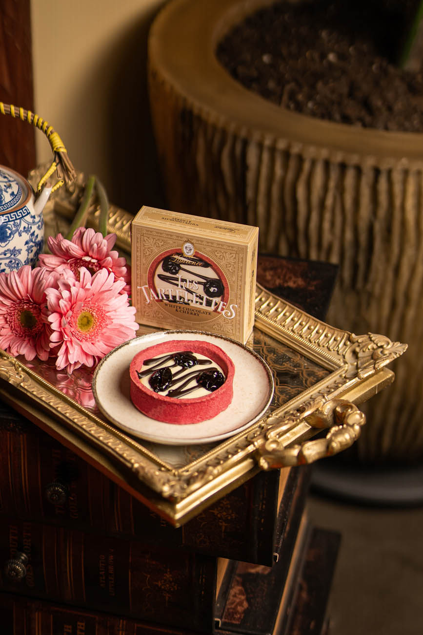 Ca. 9cm großes, zart-rotes Mürbeteig-Törtchen mit weißer Schokolade und aromatischen Kirschen gefüllt. Diese griechische Verführung wird in einer edlen Schmuckverpackung geliefert und eignet sich ideal als Geschenk.
