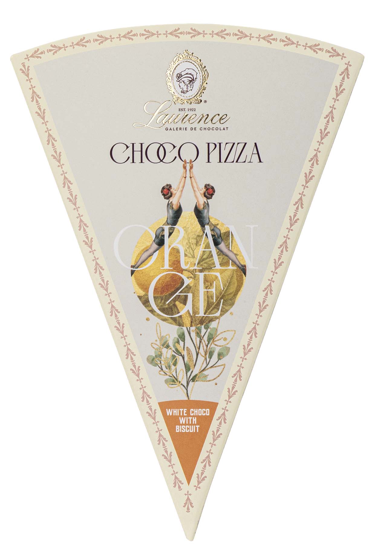 Laurence – Tafelschokolade – Pizza – weiße Schokolade mit Bisquit & Orange