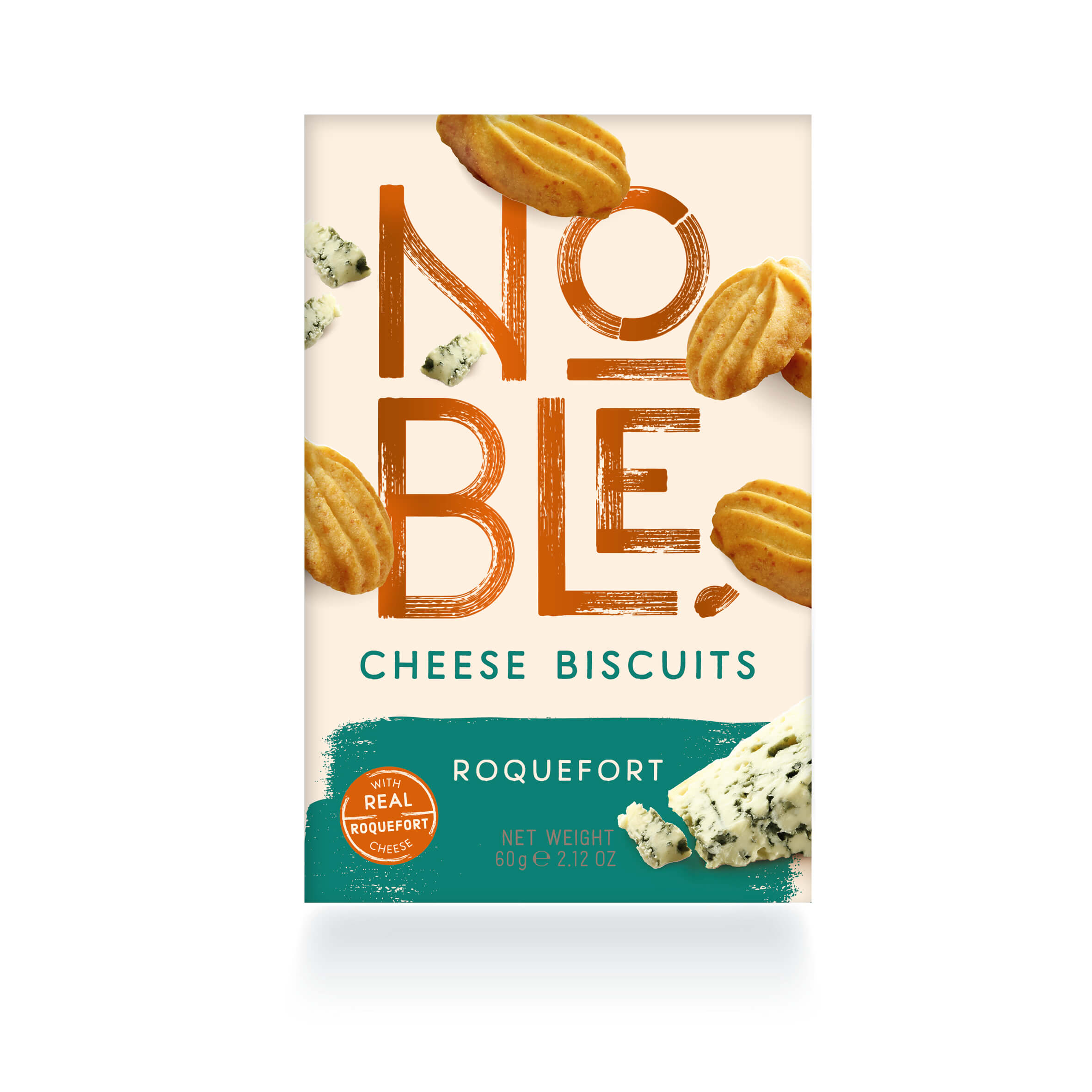 Zartes, geschmacksintensives Käsegebäck mit leicht pikantem, salzigem, echtem Roquefort-Käse (17%), in edler Schmuckverpackung